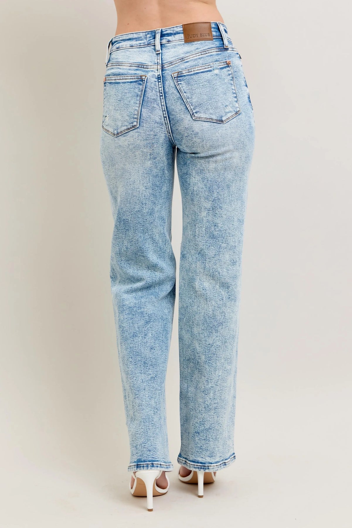 These premium straight leg jeans feature a fashion light wash denim with subtle distressing for an authentic worn-in look. Made from high-quality cotton denim with just the right amount of stretch for comfort. The high-rise waist and classic straight leg cut create a flattering silhouette suitable for any casual occasion. The jeans include traditional 5-pocket styling, belt loops, and button fly closure. The light acid wash treatment and strategic fading add vintage appeal while maintaining a modern aesthetic.