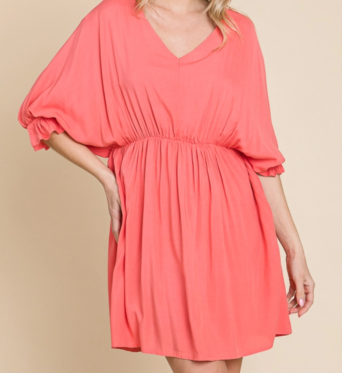 -Dolman Sleeve -Flare -Mini Dress -Solid -Short Sleeve -Open Back Side -100% Rayon