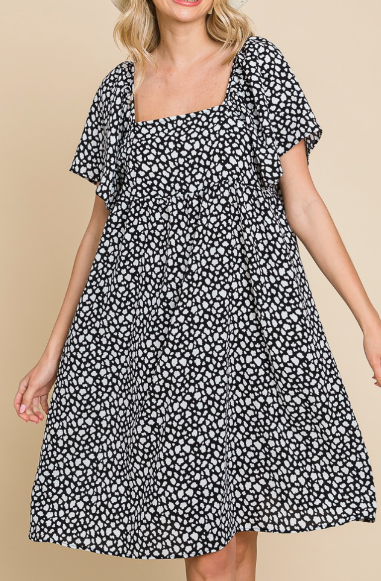 Emerald Co - Square Neck Printed Loose Fit Dress