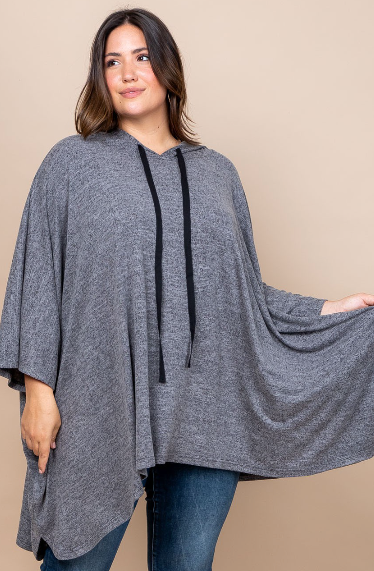 Cotton Bleu - Hacci Brushed Hooded Poncho Top