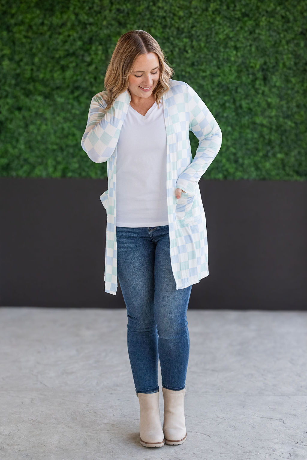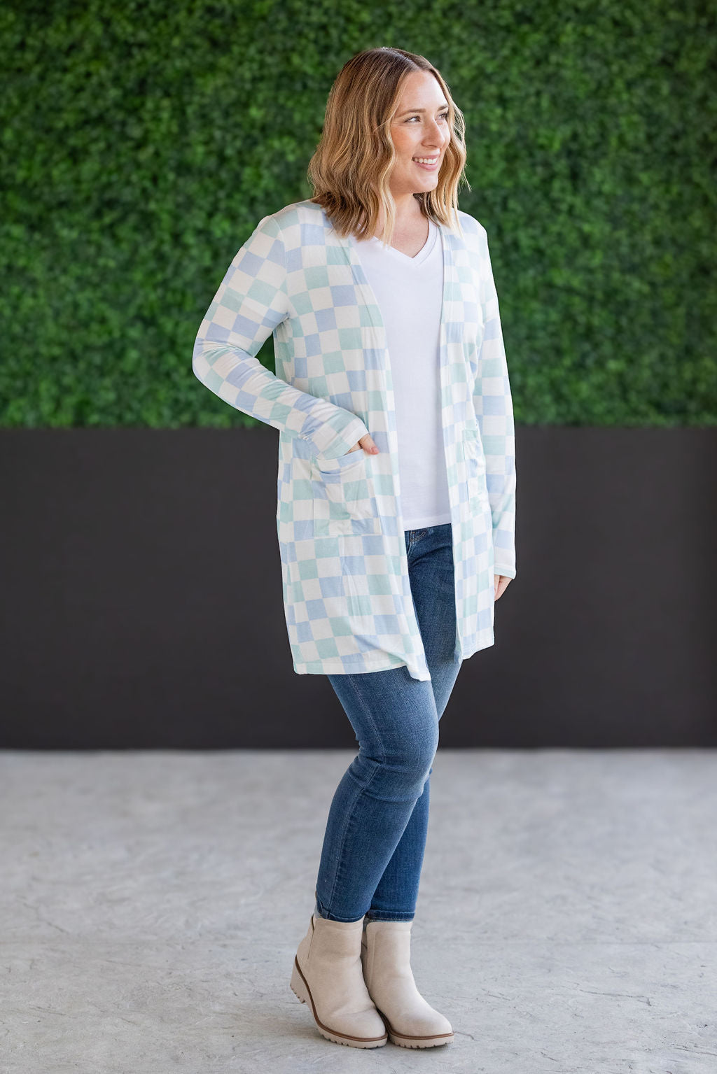 IN STOCK Classic Cardigan - Blue and Mint Checker MM EXCLUSIVE