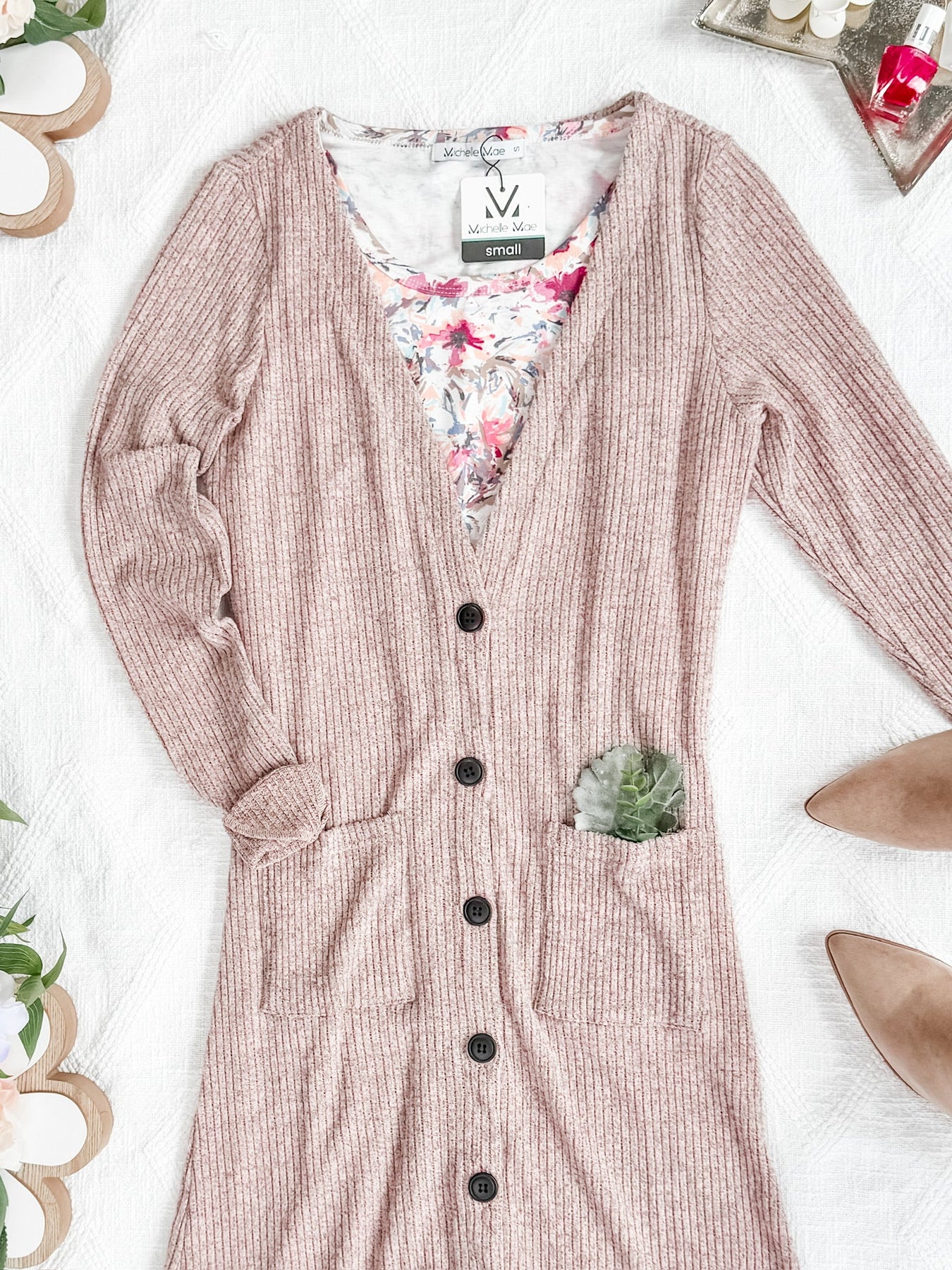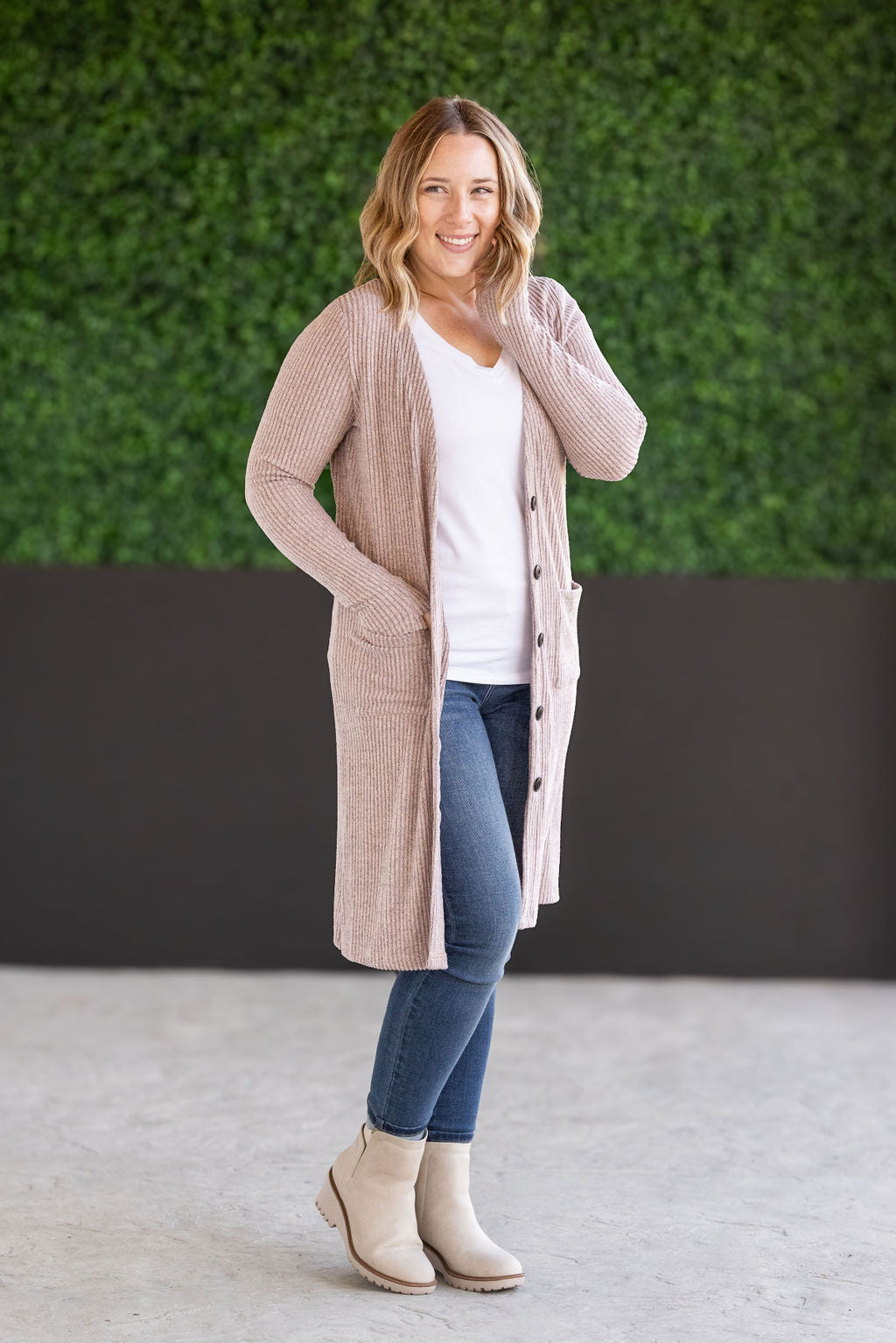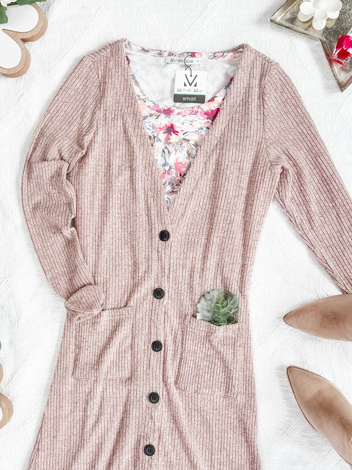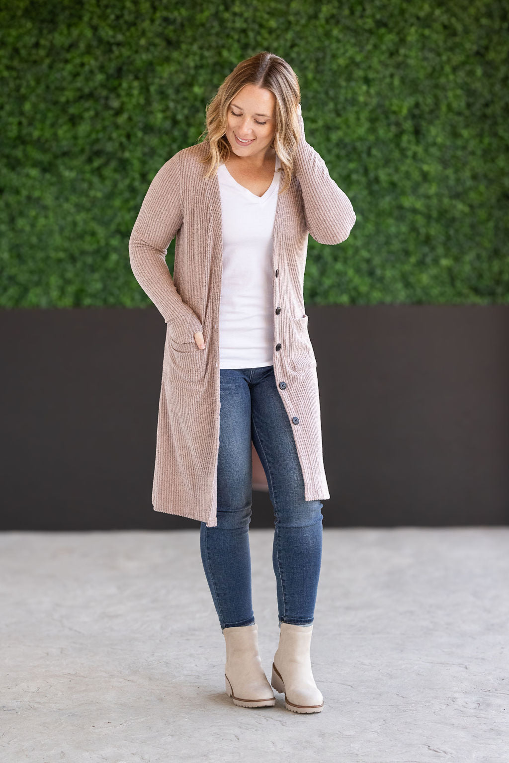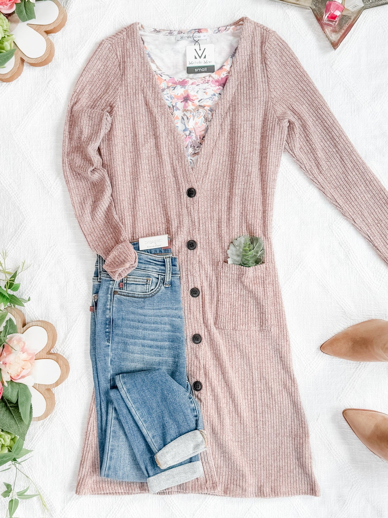 IN STOCK Colbie Ribbed Cardigan - Neutral Pink