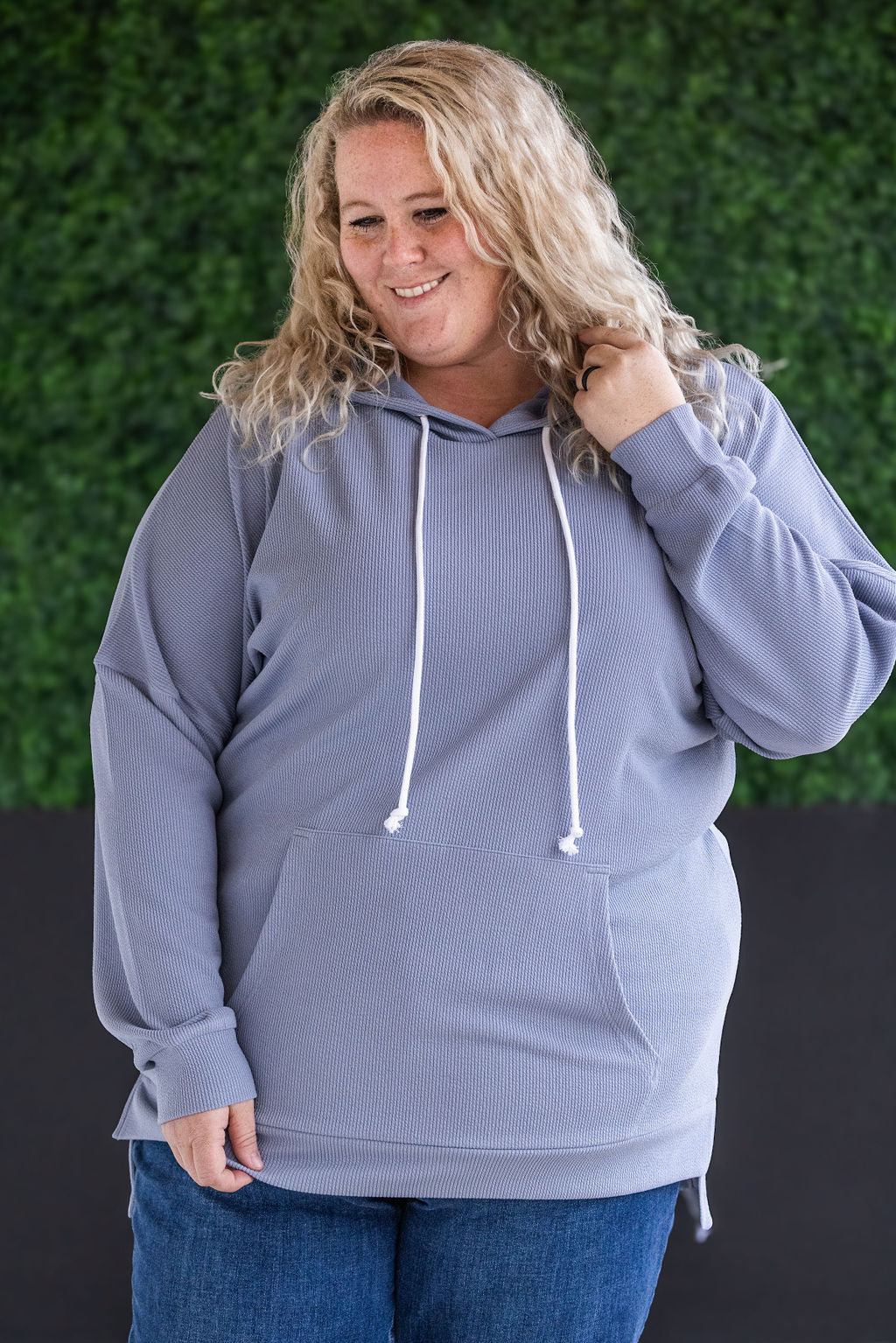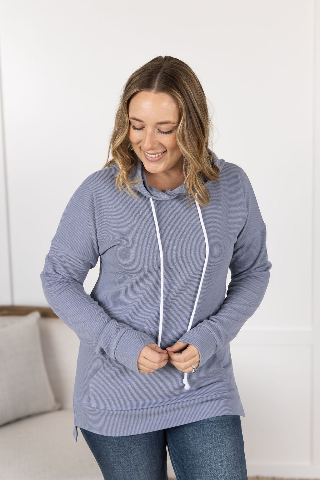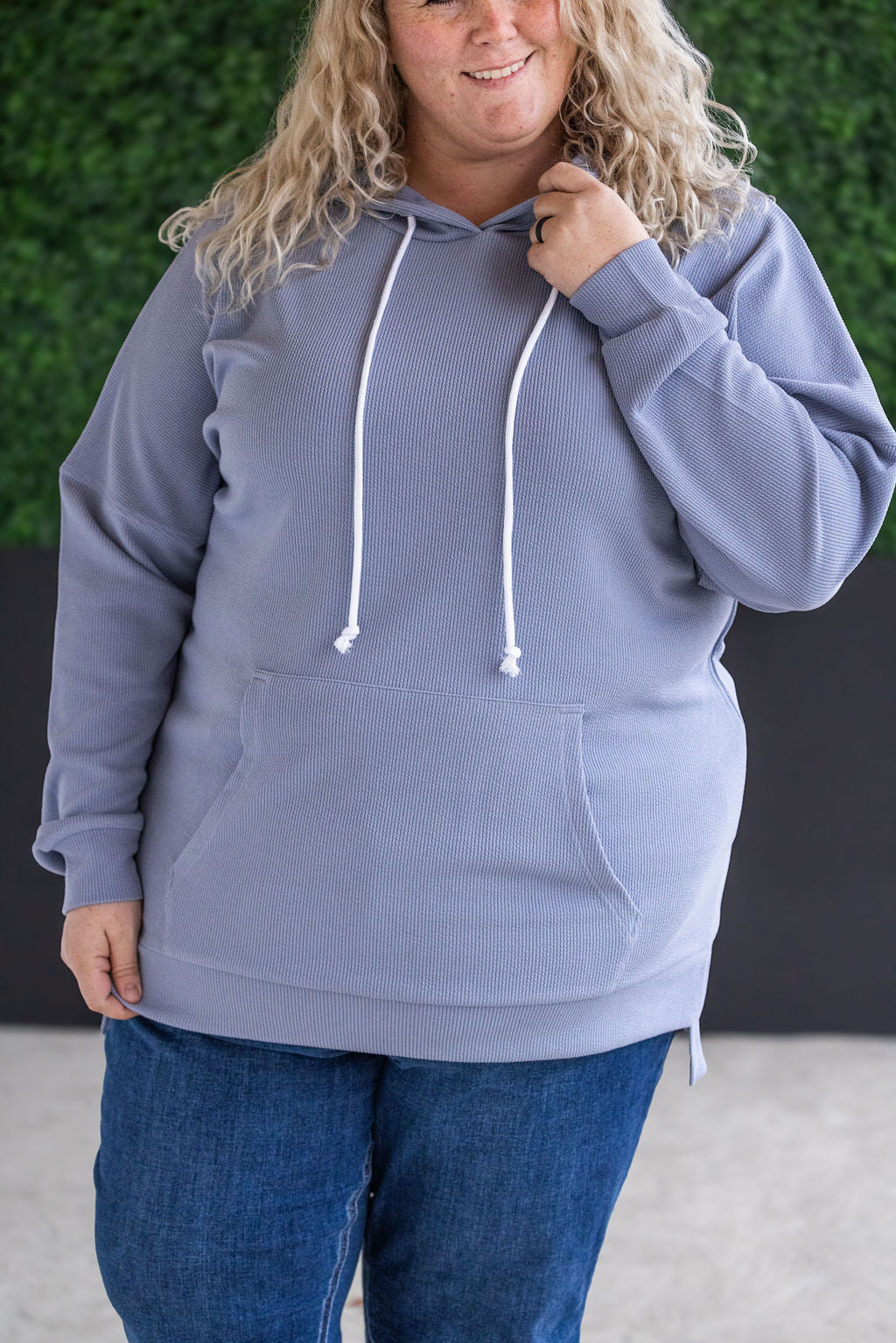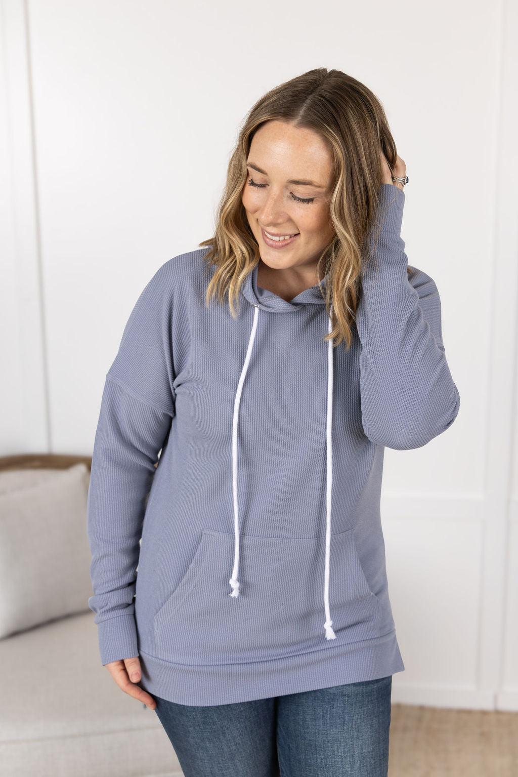 IN STOCK Kacey Ribbed Hoodie - Dusty Blue