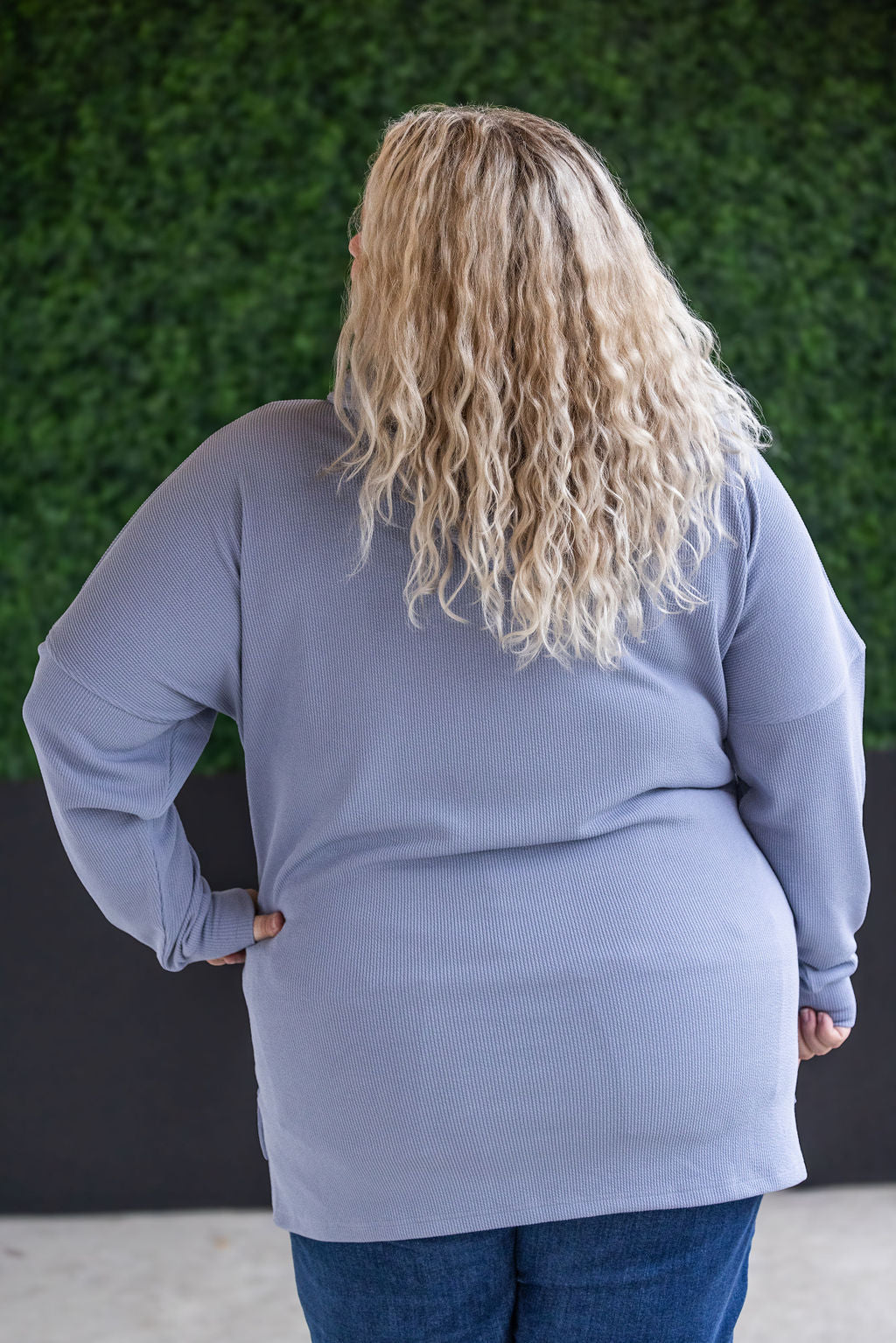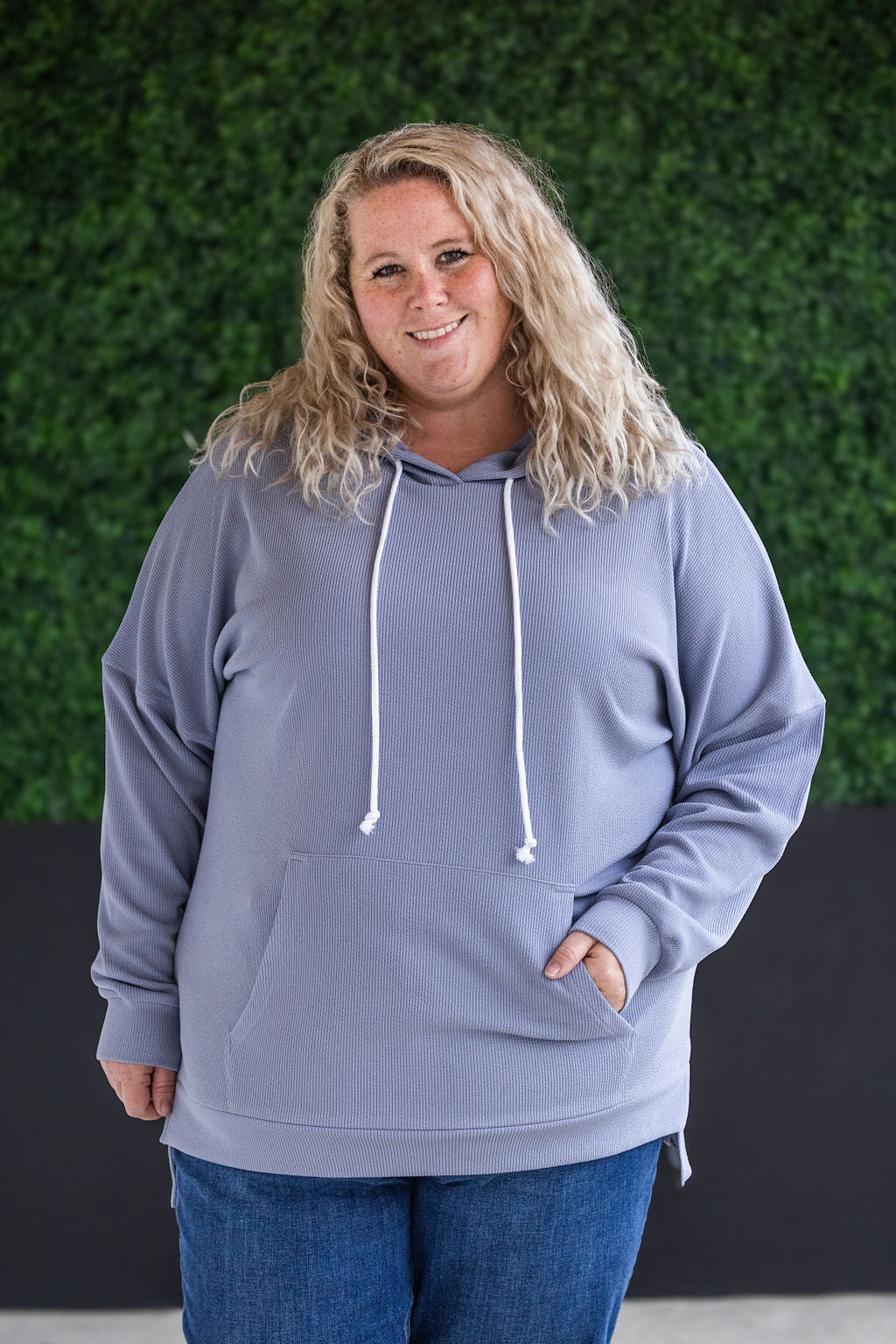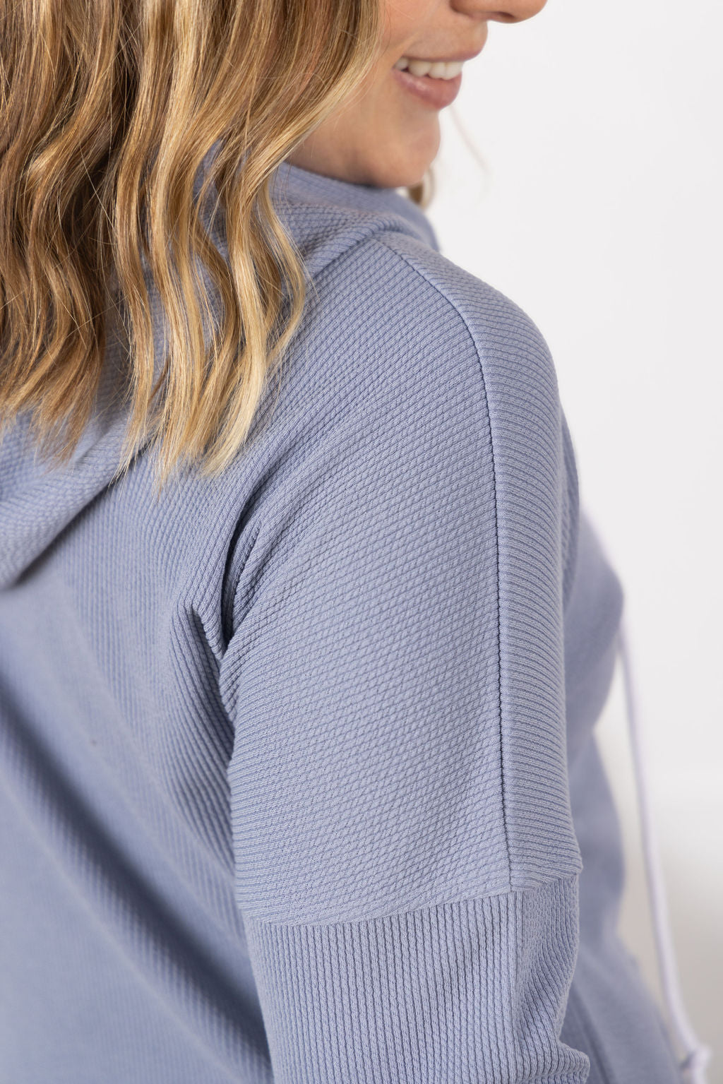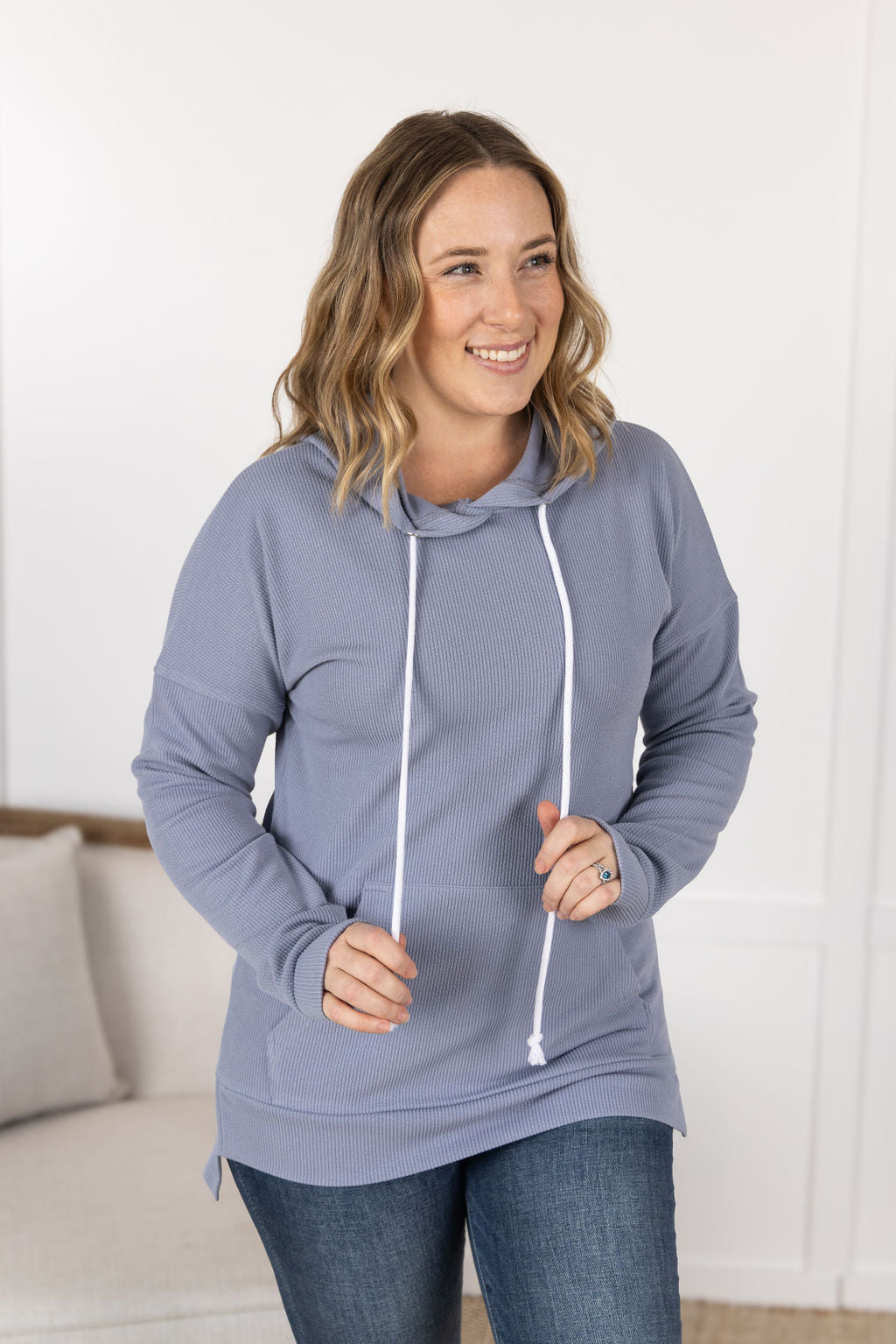 IN STOCK Kacey Ribbed Hoodie - Dusty Blue
