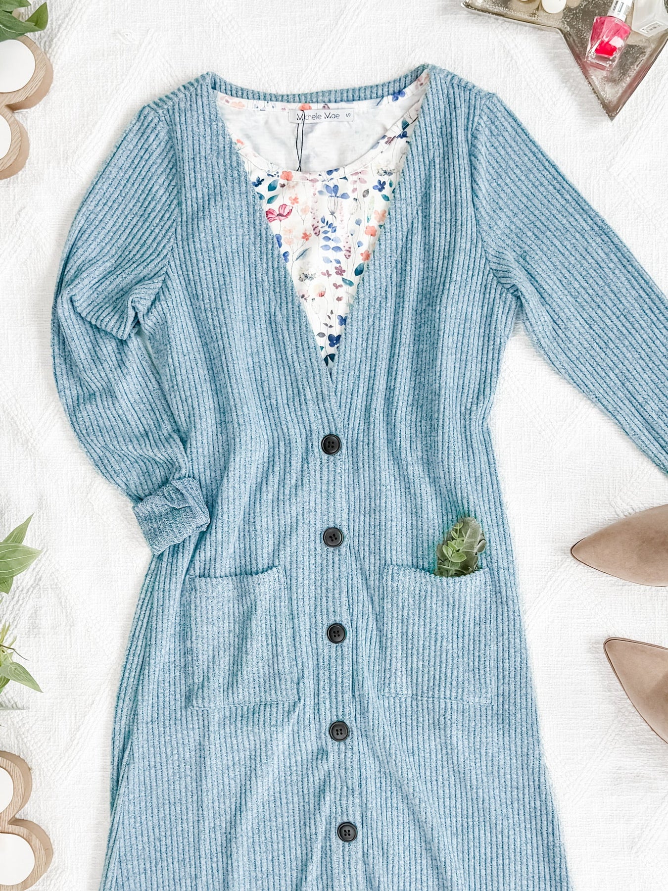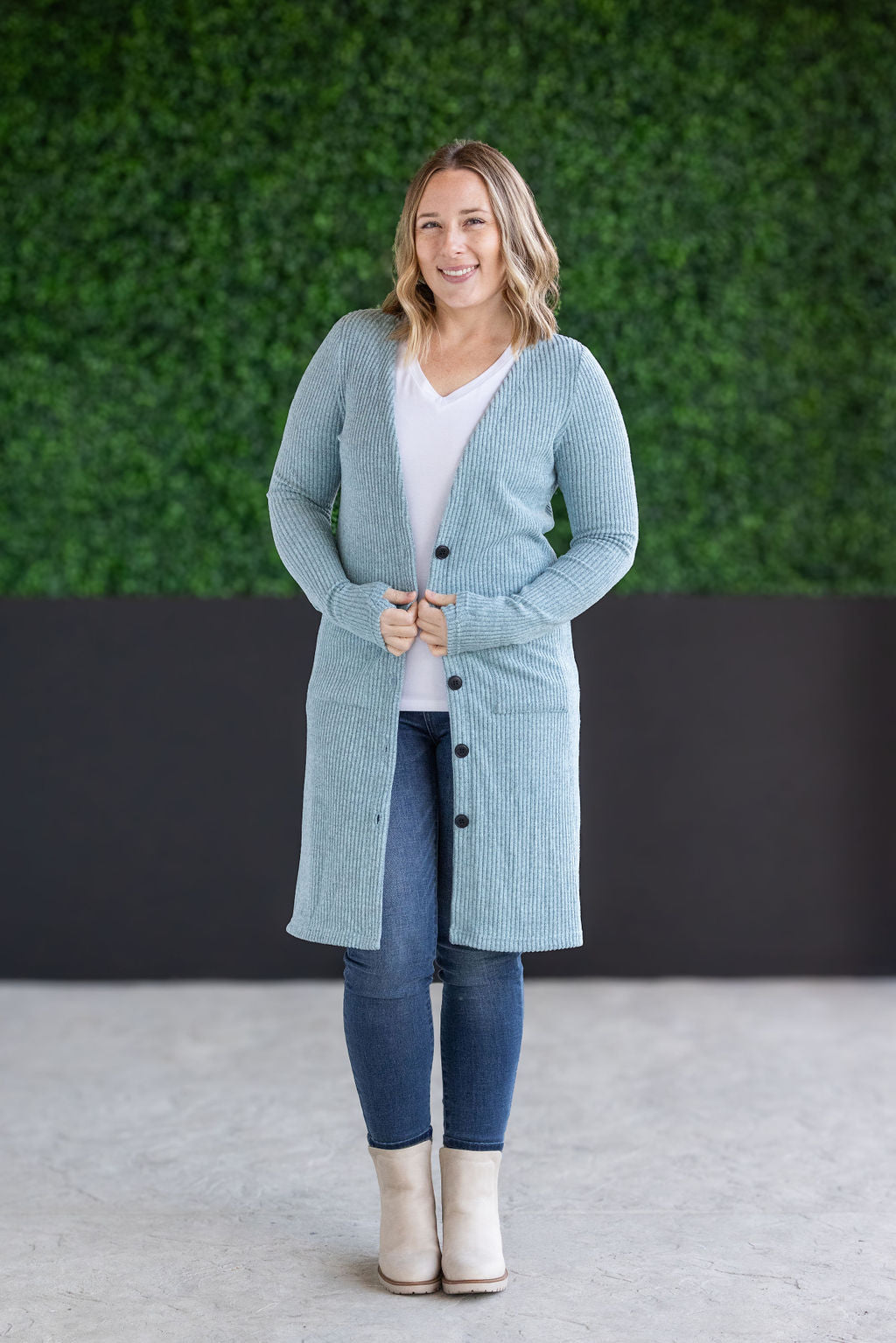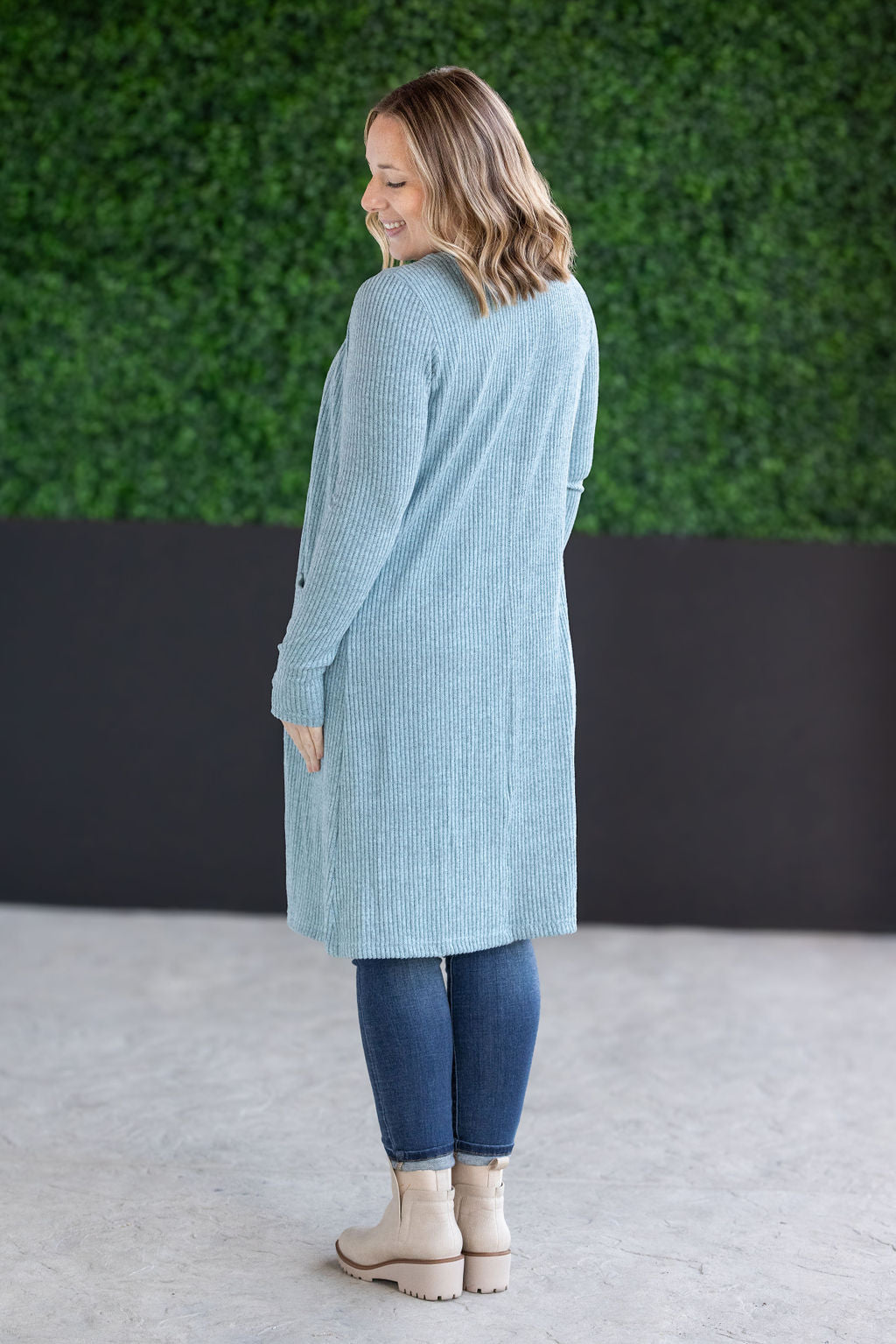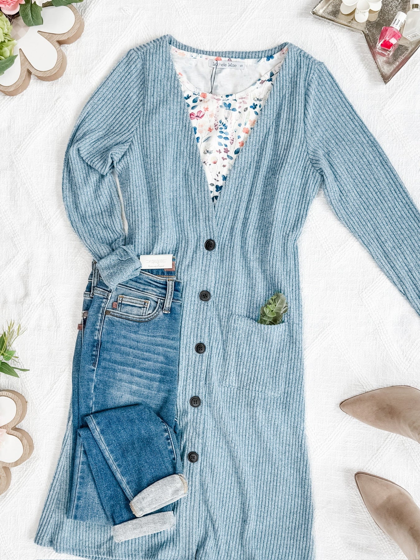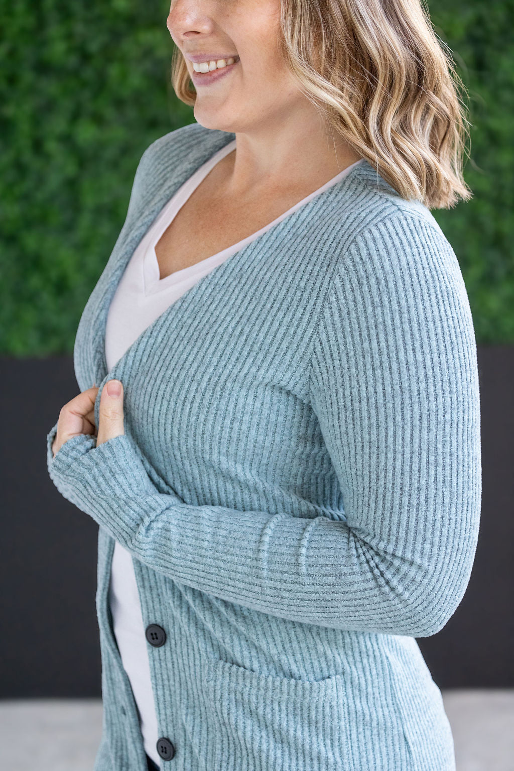 IN STOCK Colbie Ribbed Cardigan - Dusty Blue