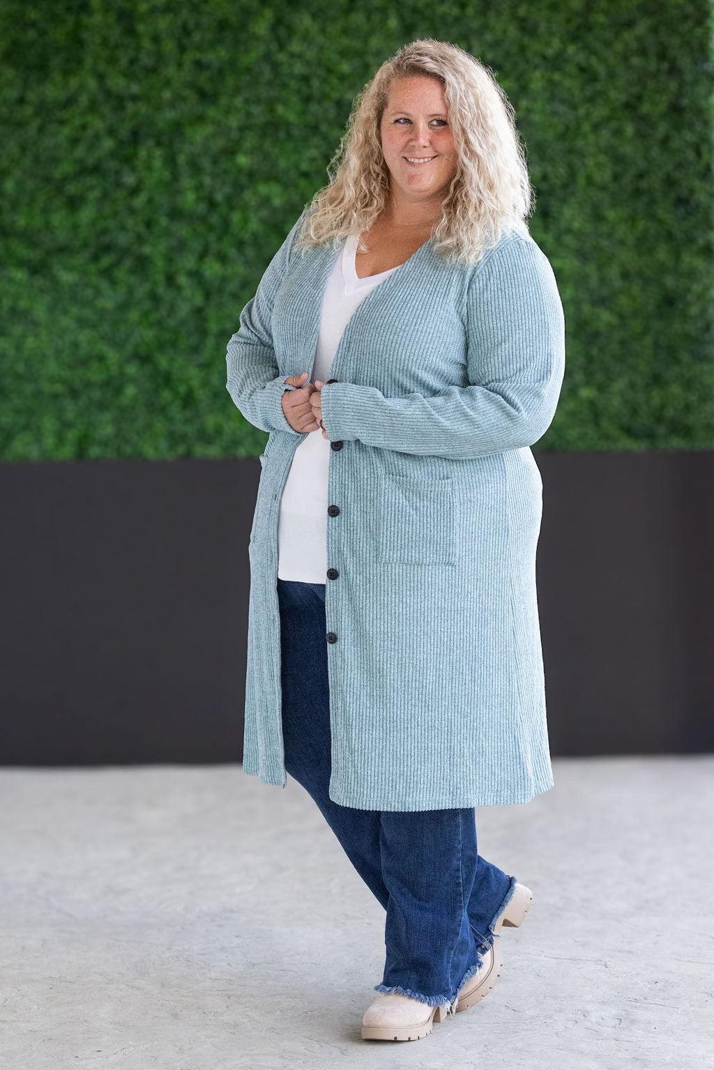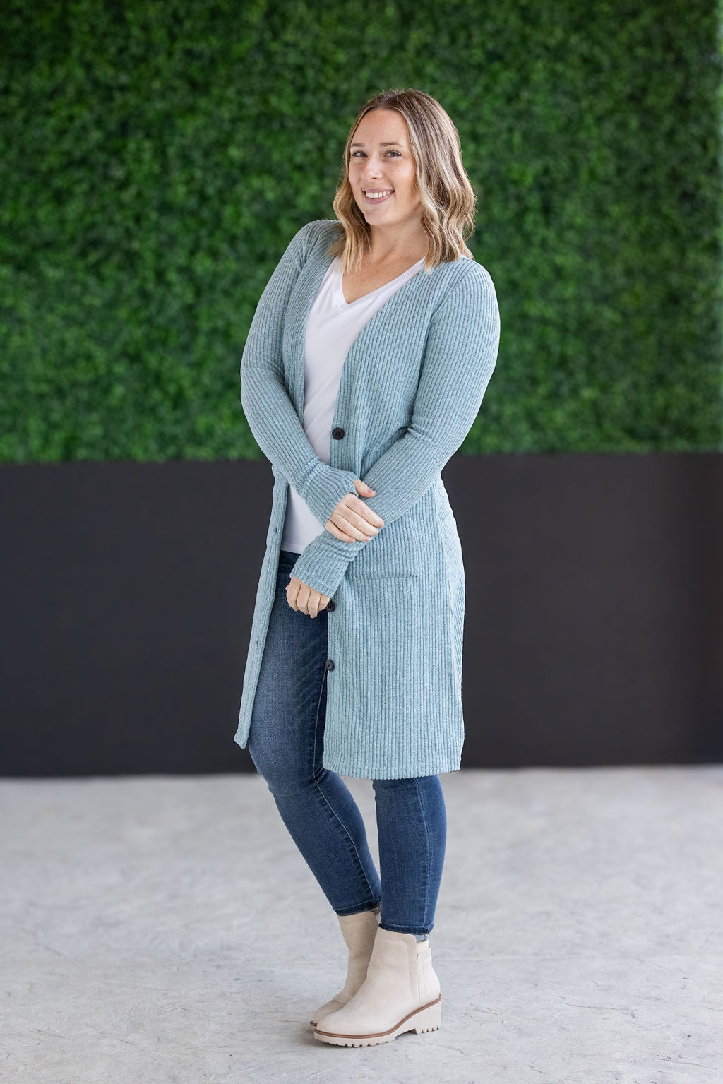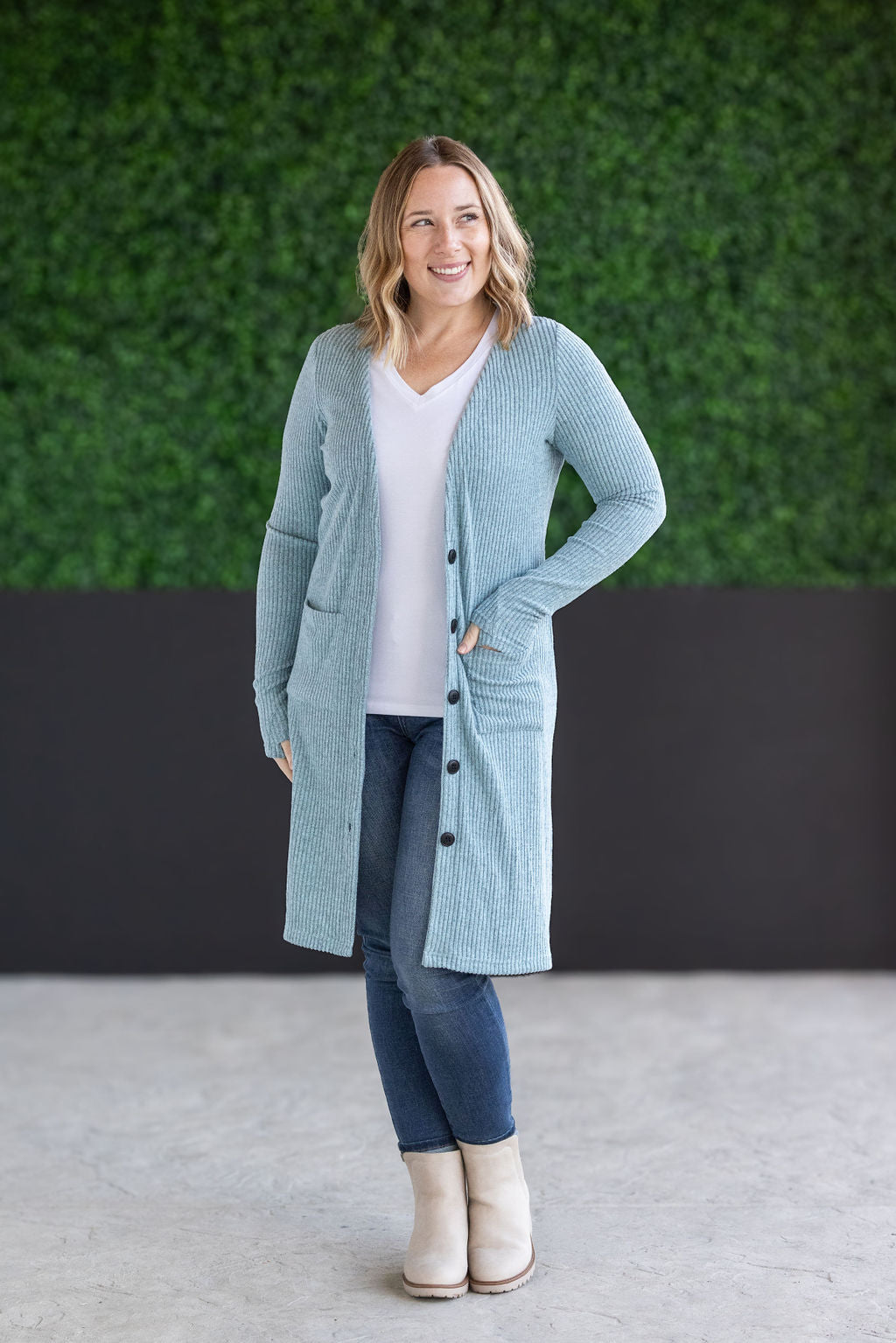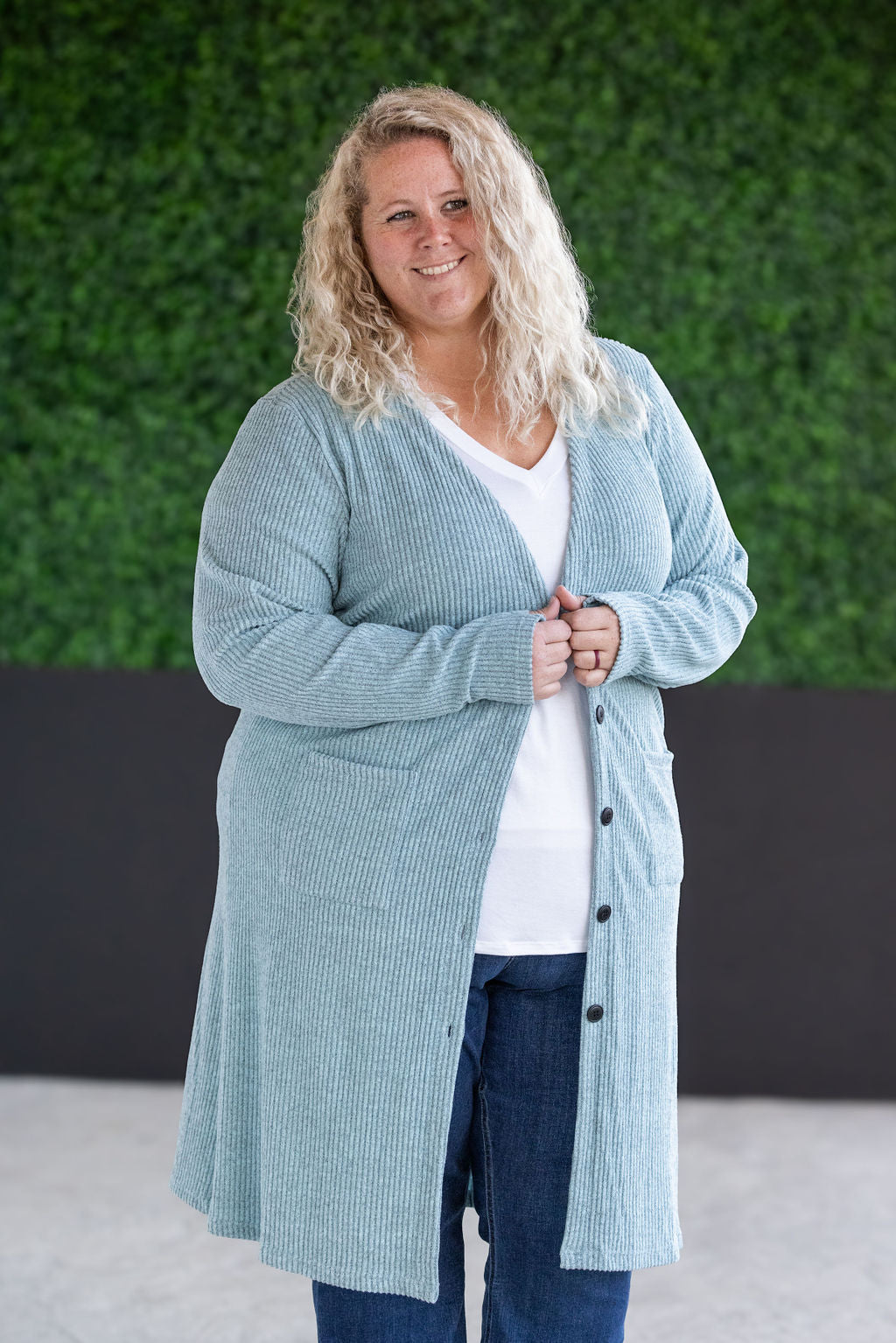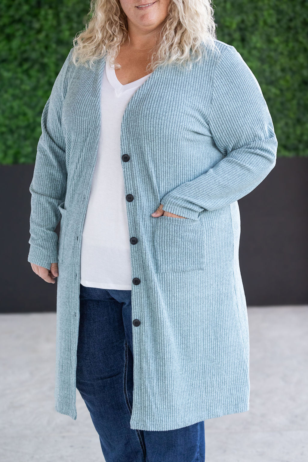 IN STOCK Colbie Ribbed Cardigan - Dusty Blue