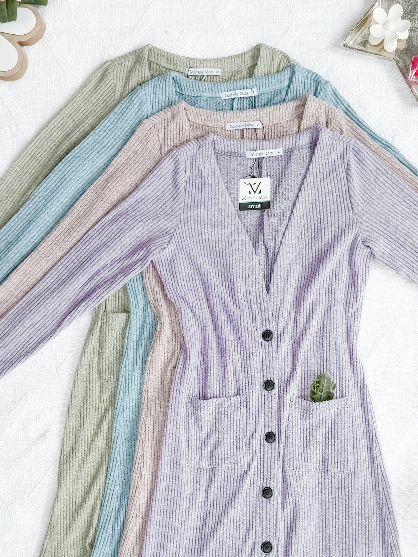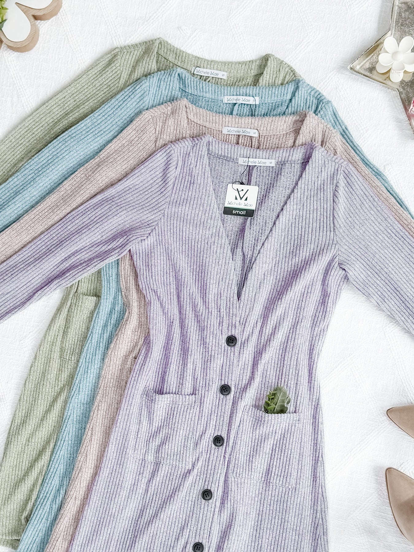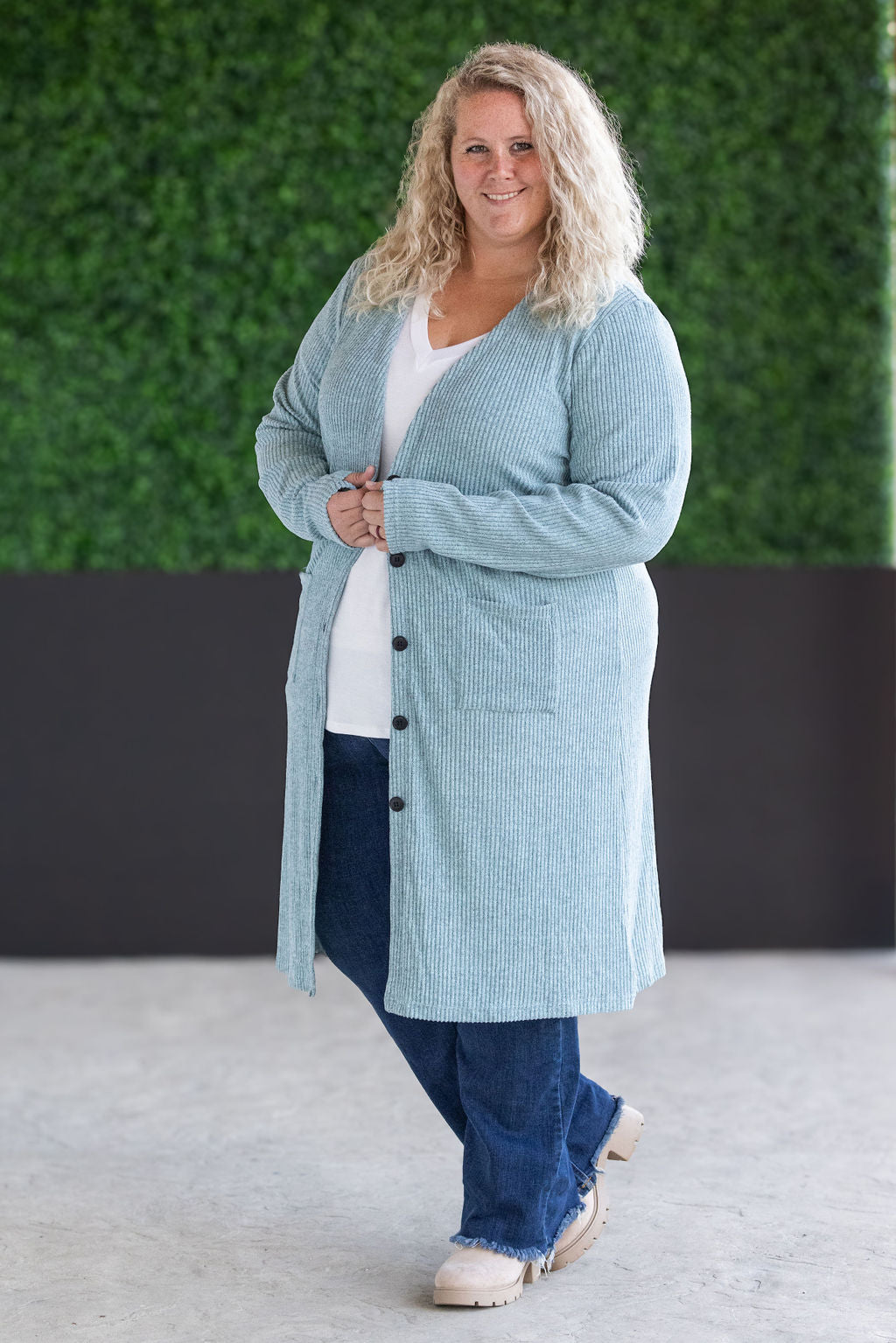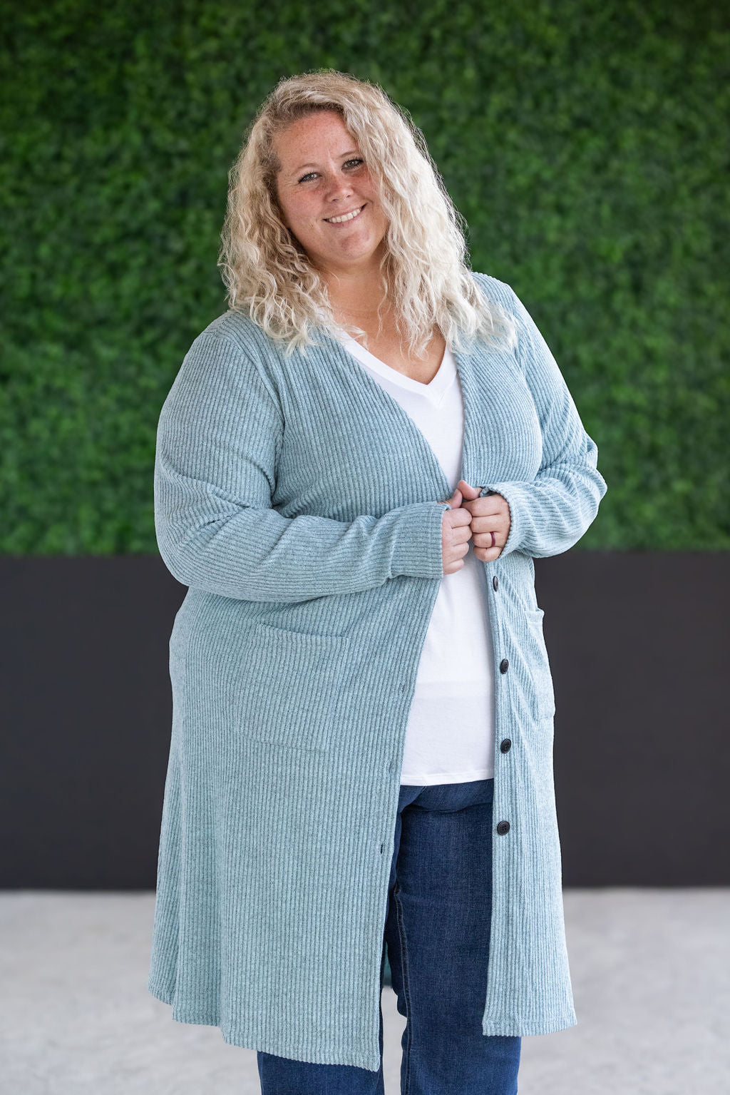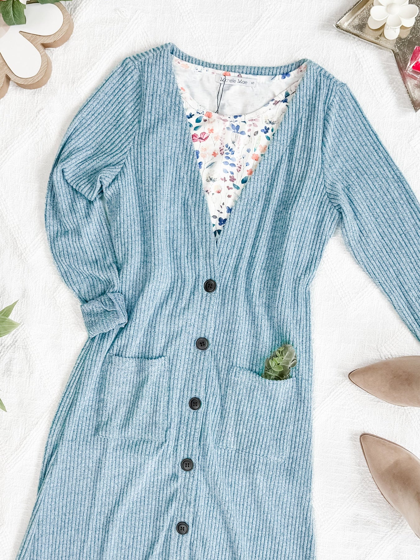 IN STOCK Colbie Ribbed Cardigan - Dusty Blue