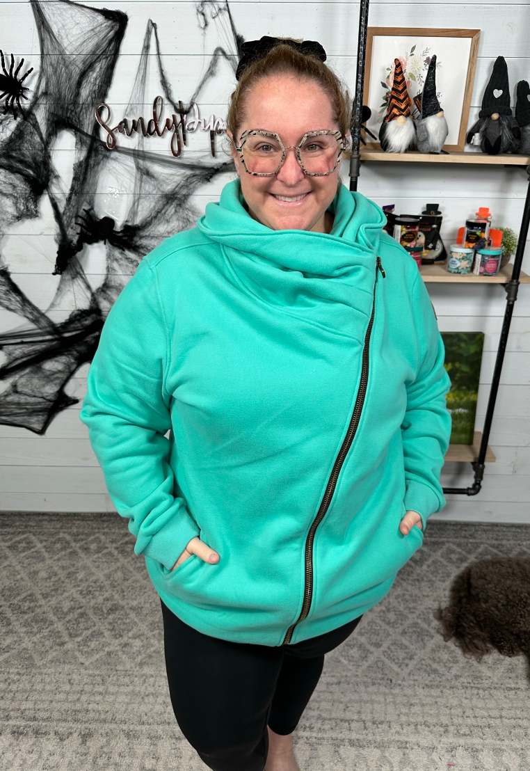 How much can you love outerwear?! To new limits with our Quinn ZipUp Cowl! This features a heavy-duty bronze asymmetrical zipper, side pockets, elastic wrist cuffs, elastic bottom band, and luxurious fabric with good stretch!