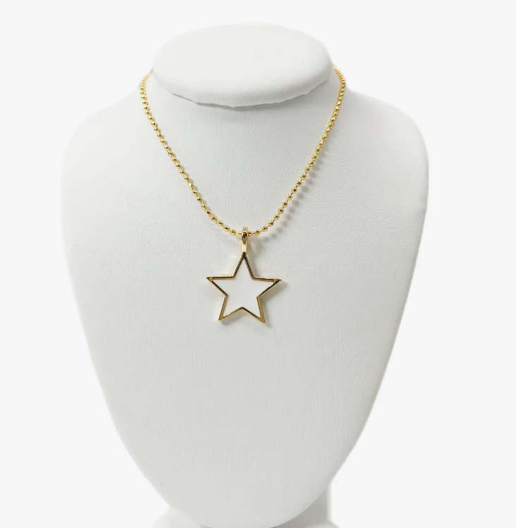 Color: gold with enamel color Length: 14” inches long with 2” inch extender Metal: brass with 24K gold plating Lead and nickell free