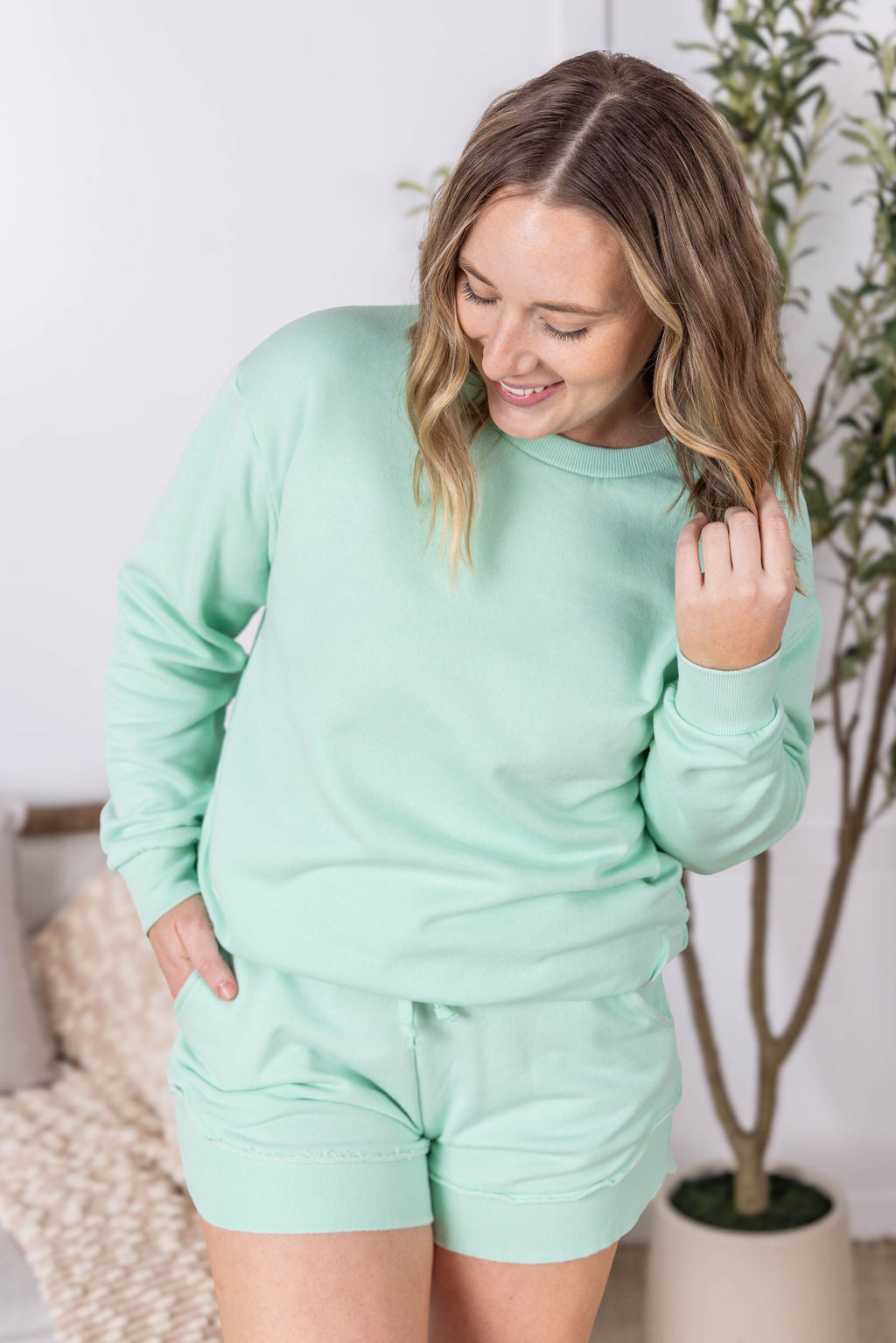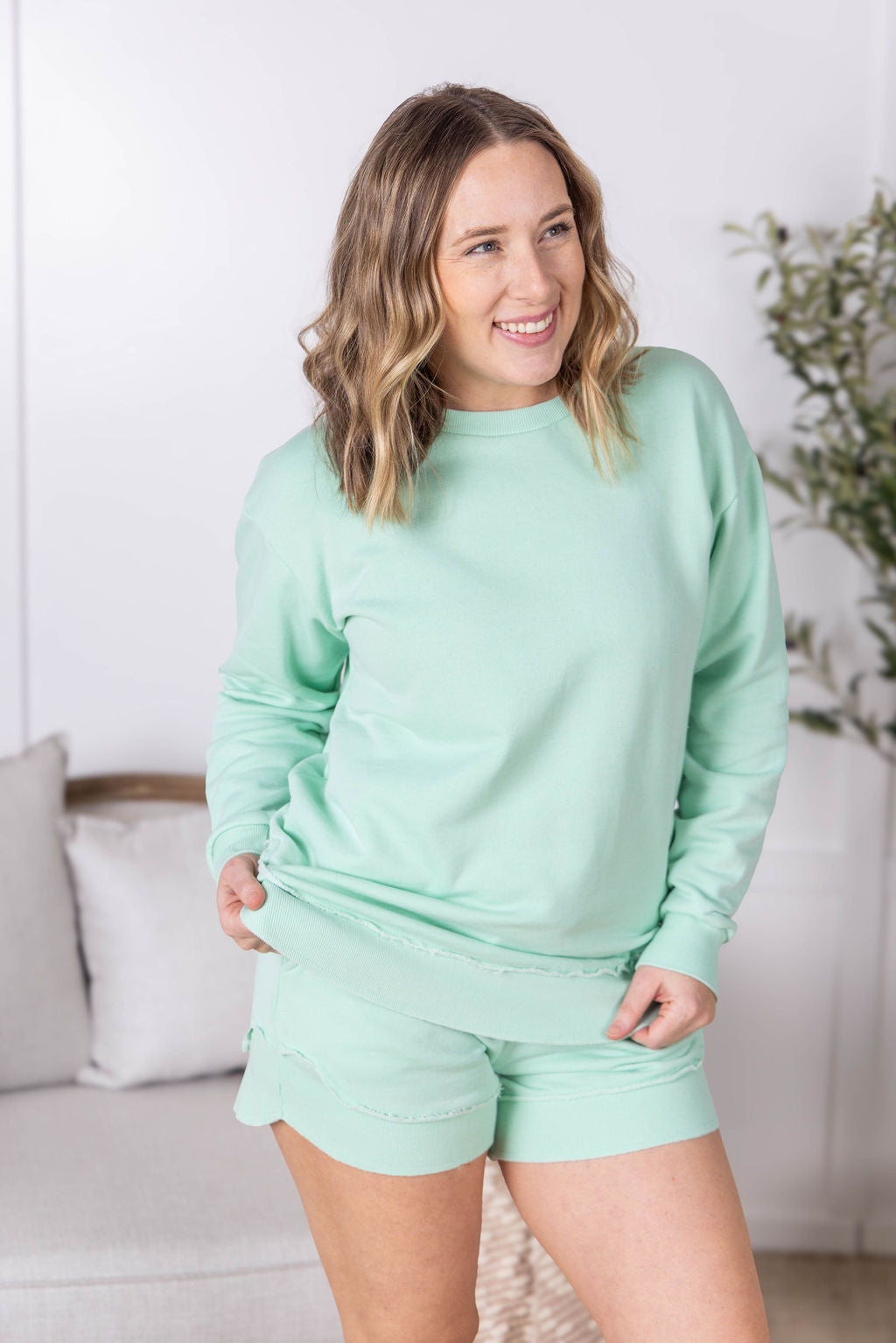 Hello comfort! These amazing Stevie Shorts are the newest style from Michelle Mae, and are made with super soft french terry fabric. These have a functioning drawstring, pockets, and double elastic top band for extra hold! Plus, we love the cute but classy side scoop!