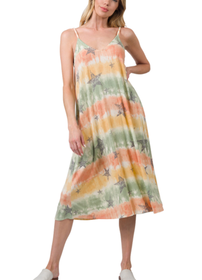 Zenana - PRINTED V-NECK CAMI KNEE LENGTH DRESS